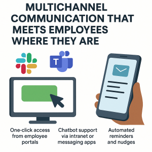From Slack and Teams to mobile notifications and email, Benefits Reimagined supports omnichannel delivery. Whether your team is remote, hybrid, or deskless, we help you implement workplace communication tools that align with how your people work.